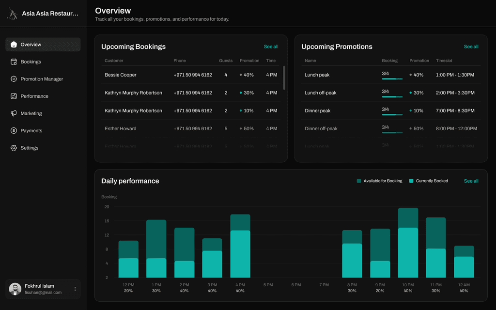 Moqa is designed exclusively for mid to high-end venues. Promotions are private, dynamic, and time-bound. Never blanket offers. Your premium positioning remains intact.